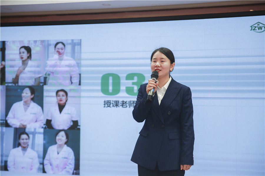 随后,外联部经理苏琼介绍了公司情况,向学员们展示了公司的整体实力和培训就业“一条龙”服务。“大家在长沙市金职伟业培训学校学习后,可以去往门店进行实习就业,如果有需要创业支持的小伙伴,我们公司也可以为大家提供加盟服务”,接着,她对学员们提出培训要求,“大家上课一定要每天按时签到,勤做笔记,最后,祝大家生活愉快,学习顺利,学有所获!”