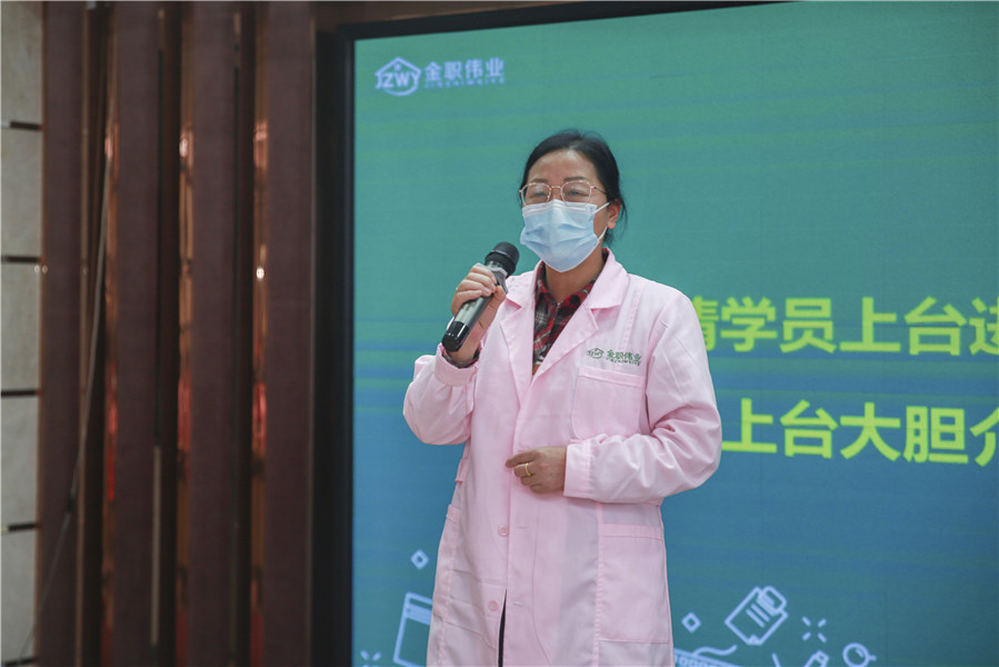 典礼伊始,湖南金职伟业集团董事长彭英女士进行致辞,她对学员们的到来表示热烈欢迎,同时向学员们分享自己的经历,从贫寒子弟到公务员,再到为了改变命运,放弃“铁饭碗”,下海经商成为企业家,彭英女士用自己的亲身经历向学员们讲述一个拼搏改变命运的故事,“我们母婴行业也有很多像我一样逆袭的事例,我也希望大家能通过自己的努力拼搏,创造属于自己的财富!”她表示,学员们能来到金职伟业进行培训,是极其幸运的,不能因为这次培训班是免费培训而有所懈怠,最后,她呼吁学员认真学习,“大家一定要抓紧这个机会,按时按点学习,跟紧老师的步伐,凭借这股东风,成为真正的技能型人才,实现自我价值!”