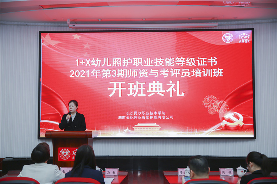 为全面落实《关于在院校实施“学历证书+若干职业技能等级证书”制度试点方案》,高质量开展1+X幼儿照护职业技能等级证书制度试点相关工作,提高院校整体师资水平,4月8日上午,1+X幼儿照护职业技能等级证书2021年度第三期师资及考评员培训开班典礼在湖南长沙隆重举行。