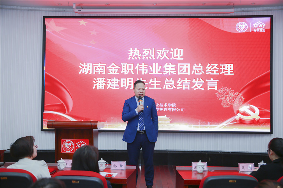 最后,湖南金职伟业集团总经理潘建明做总结讲话。首先,他对在座每位老师的到来表示热烈欢迎,同时表示今年是建党100周年,金职伟业将以更大决心、更实举措做好幼儿照护职业技能等级证书制度试点的各项工作,“希望在接下来的6天学习时间里,老师们能强化责任担当,静心学习,金职伟业期待能与全国各地的老师共同携手奋进,取得更具创新性、更有价值的优异成果。”