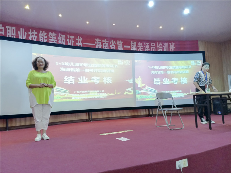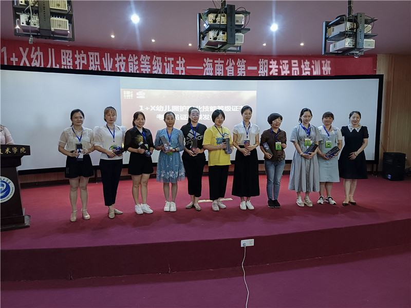 4月20日,1+X幼儿照护职业技能等级证书海南社会培训基地首期社会考评员培训班在海南职业技术学院顺利结业,广东木直教育集团董事长姜润娟、海南正向海星教育投资有限公司总经理邹凤娟、湖南金职伟业集团1+X项目部成员夏虎等领导出席结业典礼。
