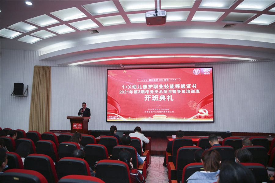 4月27日上午,1+X幼儿照护职业技能等级证书2021年度第三期期考务技术员及督导员培训班开班典礼在湖南长沙隆重召开。