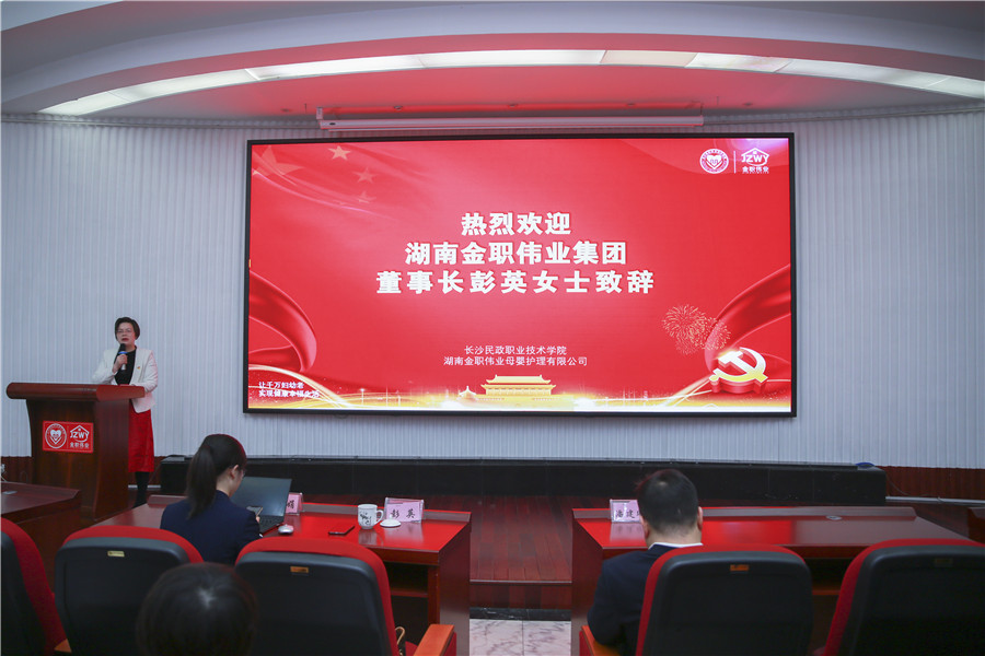 典礼伊始,湖南金职伟业集团董事长彭英进行开场致辞。首先,她对每位老师的到来表示热烈欢迎,并表示,督导和考务工作不仅事关14万余名院校考生的切实利益,也关系到各个考核站和院校考核点的声誉。“今后,金职伟业将不遗余力继续推动1+x幼儿照护职业技能能等级证书制度的落地,也将继续携手各大院校深耕托育托幼行业,致力于培养更多的优秀幼教人才。”