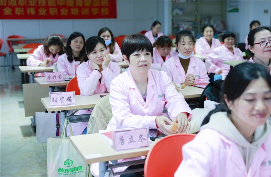 “感谢政府、街道为我们提供免费学习的机会,让我们掌握了育婴员专业知识及技能。”“这次来到金职伟业学习,是想学习知识,为之后带孙子做准备。”“我也是一名全职妈妈,在家带了好几年的孩子了,希望通过这次学习,能够上岗就业。”“自二胎政策放开以来,母婴行业的发展前景就一片大好,现在我们也赶上了国家的好政策,能够免费学习技能,感谢国家,感谢金职伟业。”“在这里,我学到了科学的育婴知识,也发现了自己之前带孩子的不足。”之后,学员们纷纷交流各自的学习感受与收获。
