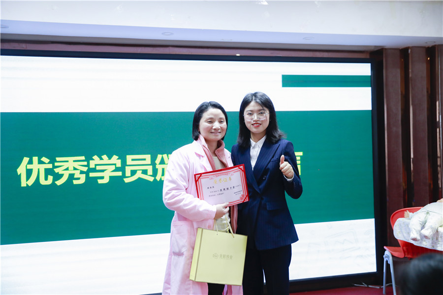 随后,对认真负责的班干部及表现优异的学员进行表彰。罗宇、胡祖凤、李焕蓉荣获“优秀班干部”称号,任艳玲、黄燕、曹敏荣获“优秀学员”称号。
