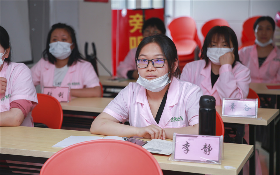 “金职伟业是一个很好的提升平台,希望在之后的10天时间里,大家都能学有所成,学有所获。”“化妆不仅给自己增添自信,还能表现对别人的尊重。”“我很喜欢打扮自己,但一直没系统学习过化妆、美容的知识,希望在这里能学到专业的知识和技巧,让自己变得更好。”