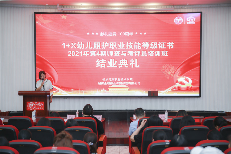 为高质量开展1+X幼儿照护职业技能等级证书制度试点相关工作,提高院校整体师资水平,5月13日,1+X幼儿照护职业技能等级证书教师教学能力竞赛暨2021年度第四期师资及考评员培训班结业典礼在湖南长沙隆重举行。