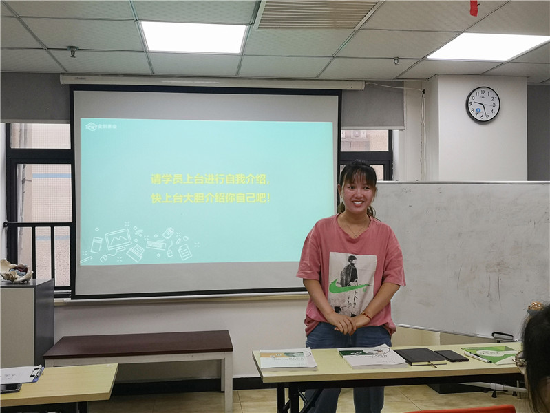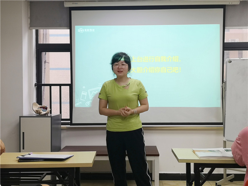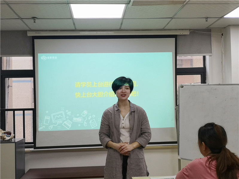 接下来,学员们一一上台进行自我介绍。热爱学习的老学员乌忠英姐姐说道,“我是老学员了,这是我来金职伟业学习的第四门课程,希望我们在学习的时间里相处愉快~”