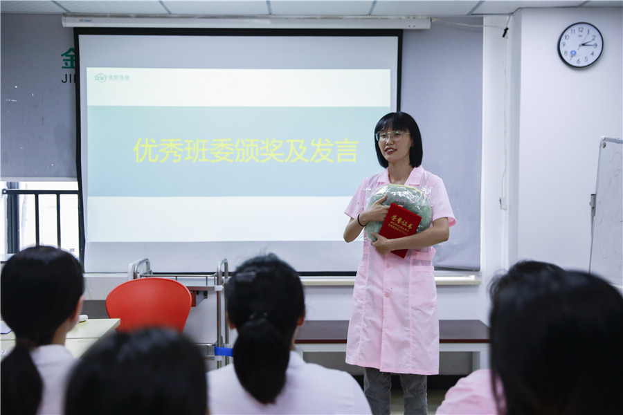 “十分感谢所有姐妹对我的支持和包容,在日常的班务管理中,大家都极其配合,整个班级的氛围也非常融洽。同时,也感谢老师们的辛勤付出,教会了我们很多就业的本领,”班长陈妙感叹道。