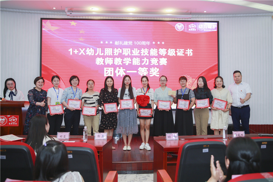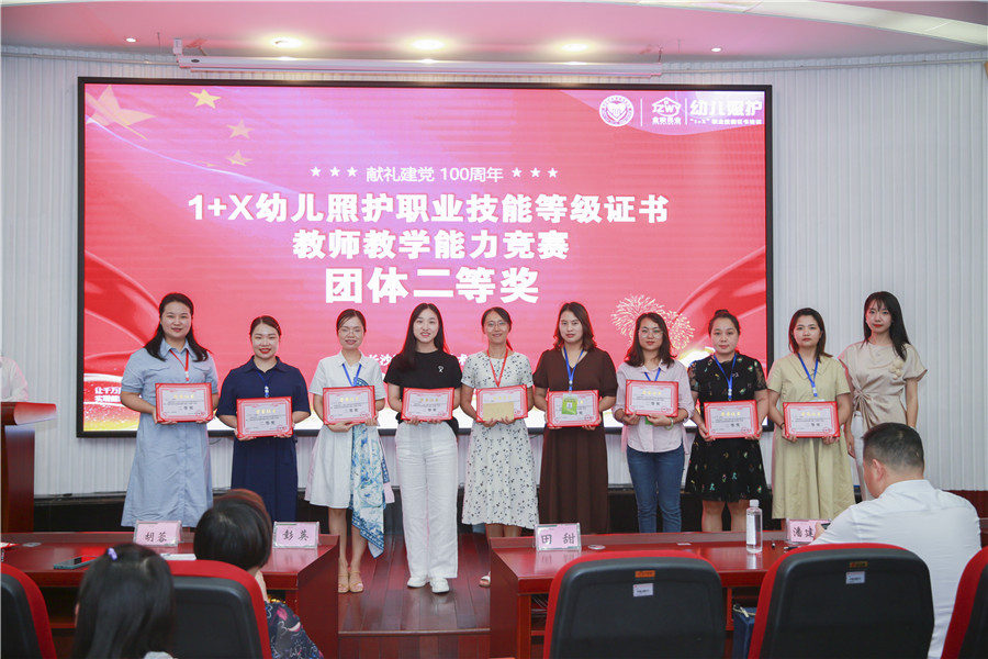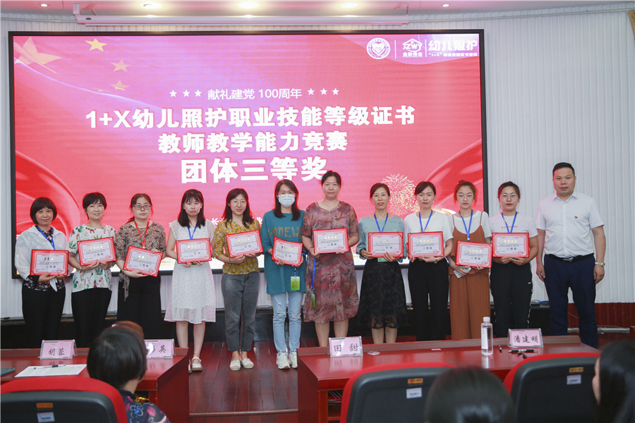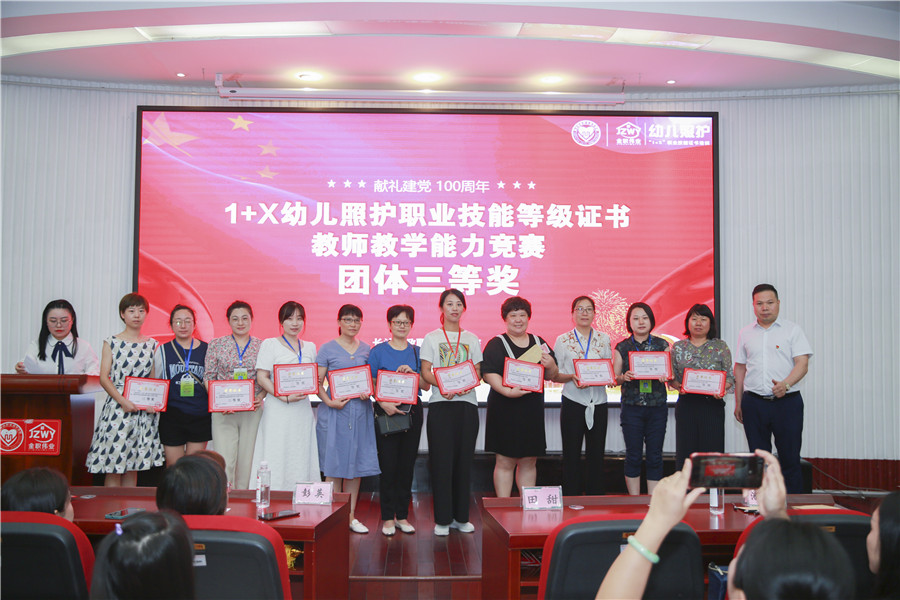 值得一提的是,为深入贯彻落实《国家职业教育改革实施方案》,引导学校与教师以立德树人为根本任务,在此次结业典礼开始前,1+X幼儿照护职业技能等级证书2021年第六期师资及考评员培训班举办了一场别开生面的教师教学能力竞赛。据悉,此次竞赛融入国家教学能力大赛标准,以“以赛促教、以赛促学、以赛促改、以赛促建”为总体思路,以团体竞赛为主要形式。在比赛过程中,各位老师教学思路清晰,板书设计科学合理,教态自然大方,表达准确清楚,充分展现出新时代教师积极进取、务实笃行的精神风貌。比赛结束后,长沙民政职业技术学院教学咨询与指导团队专家、湖南省教育考试院艺术类考试评委库专家胡蓉作为评审专家代表公布了本次竞赛结果,其中,以济南幼儿师范高等专科学校教师宋雯雯为代表的第三组荣获团体一等奖;以钦州市卫生学校教师吴佩珍为代表的第五组荣获团体二等奖;以北京市房山区房山职业学校教师梁靓为代表的第一组、以沈阳市城市建设管理学校教师刘慧玲为代表的第二组分别荣获团体三等奖。此次教师教学能力竞赛,对于深化“教师、教材、教法”三教改革,促进育训结合、书证融通起着积极的推动作用。