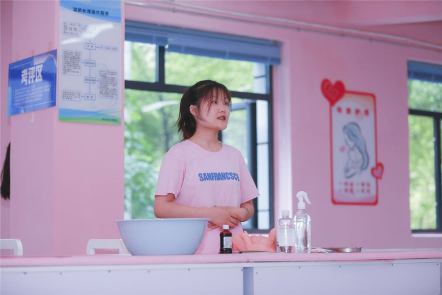 据悉,此次“1+X幼儿照护职业技能等级证书考试”为期一天,分为实操考试和理论考试两个部分,其中实操包括心肺复苏、婴儿喂水、幼儿环境布置、触电幼儿的现场救护等相关内容。为帮助学生熟练掌握各项技能,顺利通过考试,长沙民政职业技术学院于今年5月中旬起,便积极组织学生进行培训,学校根据考评要求和学生实际水平,不断优化调整人才培养方案,采取以线上线下相结合的方式对学生进行了为期一个月的理论及实操集训。