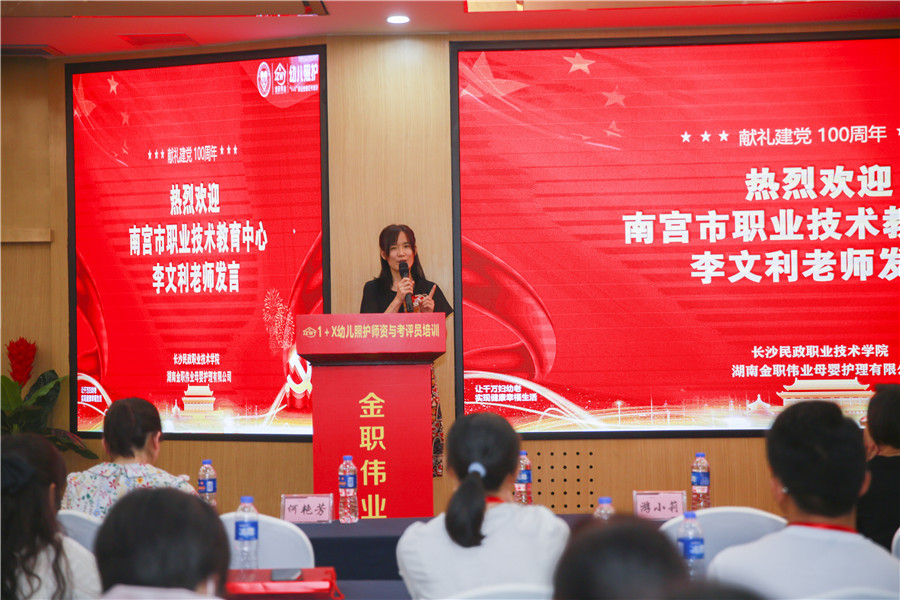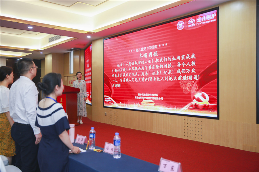 7月3日上午,1+X幼儿照护职业技能等级证书2021年度第七期师资及考评员培训班结业典礼在湖南长沙隆重举行。“起来!不愿做奴隶的人们!把我们的血肉筑成我们新的长城……”随着全体学员刚劲有力、掷地有声的歌声,本次结业典礼正式拉开帷幕。