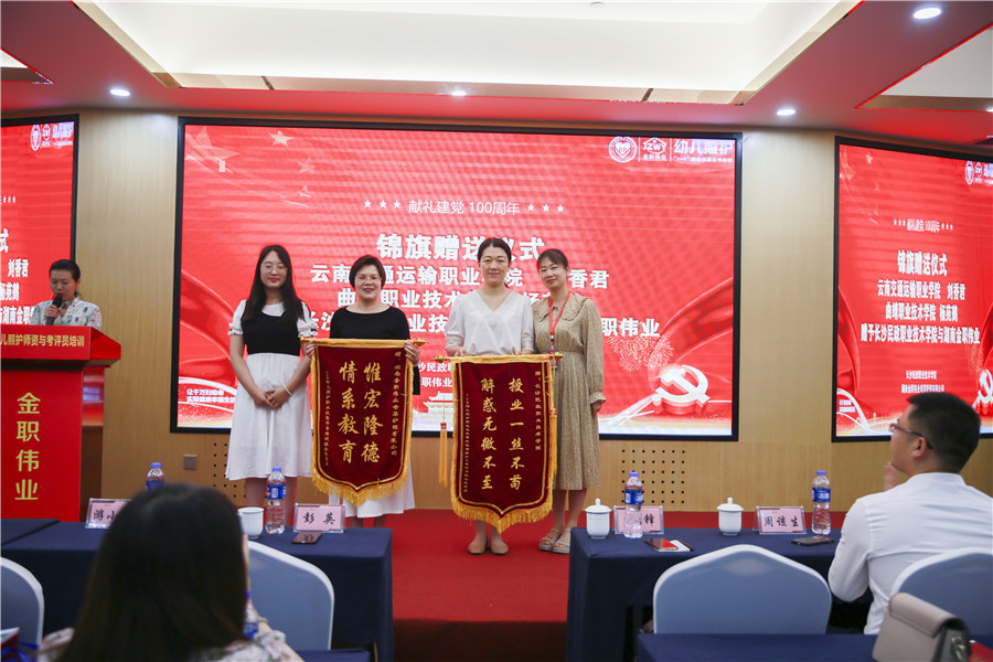 接着,云南交通运输职业学院刘香君老师以及曲靖职业技术学院杨苑鹤老师为长沙民政职业技术学院、湖南金职伟业赠予锦旗,以此表达学员们的深厚谢意。与此同时,结业典礼上还评选了一批优秀班干部、优秀学员。