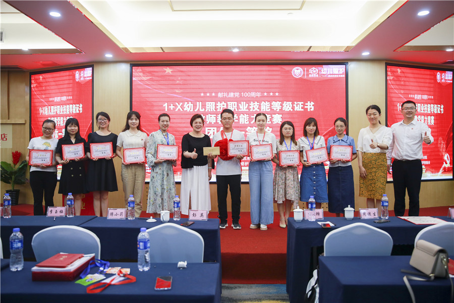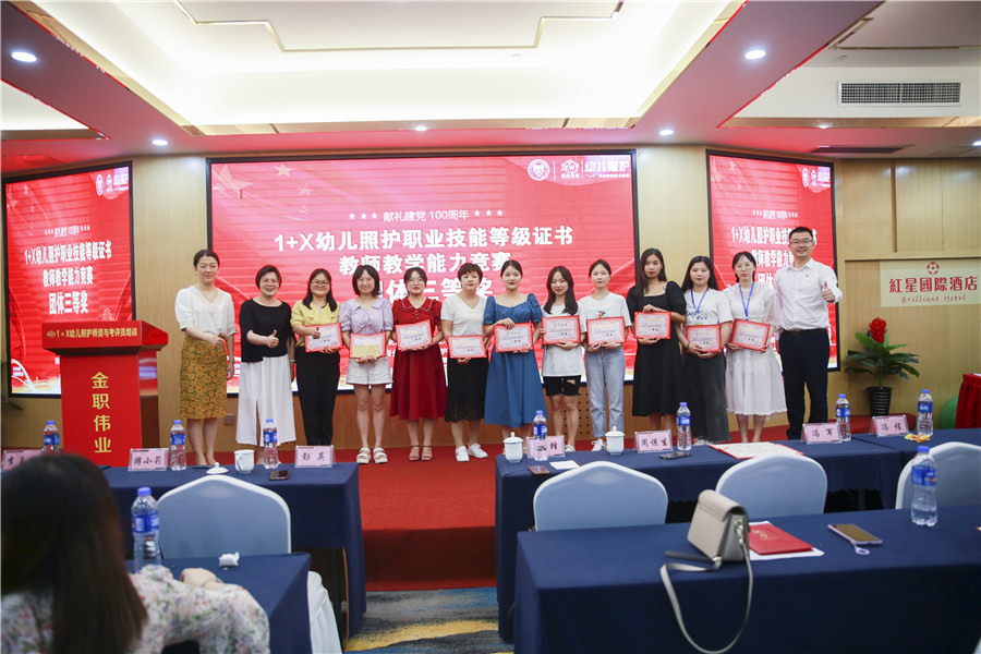 至此,1+X幼儿照护职业技能等级证书2021年度第七期师资及考评员培训班结业典礼圆满落幕。今后,金职伟业将携手更多1+X幼儿照护职业技能等级证书试点院校、企业,共同开展此类教师教学能力大赛,坚持育训结合,促进课证融通,把1+X证书制度试点与专业建设、课程建设、教师队伍建设等紧密结合起来,通过1+X试点工作,深化“三教”改革、产教融合的人才培养模式改革,进一步落实立德树人根本任务,造就一支有理想信念、有道德情操、有扎实学识、有仁爱之心的高素质、专业化教师队伍,为行业、社会培养一批高素质、高质量、复合应用型的技能人才,为推动职业教育高质量发展、建设现代职业教育体系作出新的更大的贡献。