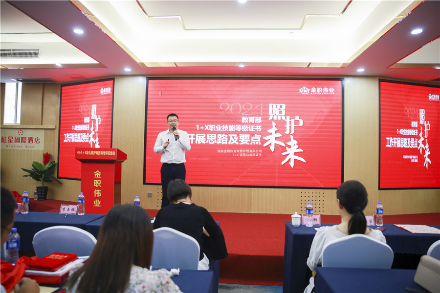 最后,湖南金职伟业集团市场总监周该生为本次结业典礼进行总结发言,“在1+X幼儿照护试点工作这条路上,我们一点都不孤单,正是因为有大家,有一群共同的付出者、奋斗者一起同行,我们感觉到满满的力量。”同时,他对未来做好1+X证书试点工作,提出“三好五心教学”“组建师资团队”“申报考核站点”“做好课证融通”等战略方向,希望各院校能全面深化教师、教材、教法“三教”改革,“岗课赛证”综合育人,深化复合型技术技能人才培养模式,全力提升教育质量。