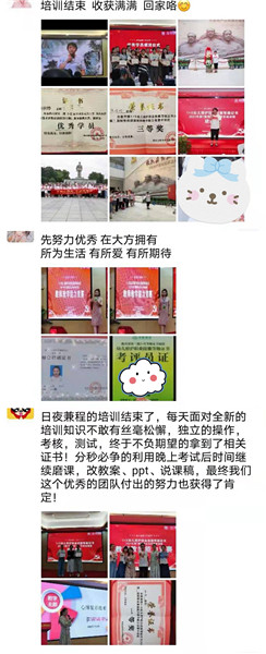 来自南宫市职业技术教育中心教务处幼儿保育专业李文利老师、昭通市职业教育中心教育艺术系学前教育专业陈秋萍老师作为优秀学员代表,分享了各自的学习心得,“感谢大家让我有在这里表示感谢的机会,6天的时间我们一起学习,一起完成任务。作为组长,感谢小伙伴对我工作的支持,感谢金职伟业‘狠心’的课程计划,只有这个‘狠心’,让我短短一周内学到这么多的知识技能;也只有这个‘狠心’,让我回校之后用真心、爱心、细心、关心、责任心去塑造孩子们的未来。”“理论学习是充实的,实操演练是挑战的,收获是满满的,也为我们打开了一道新的大门,让我们看到更多职业教育发展的未来。金职精神引领职教人前行,我们将带着这份体验与收获去服务学生、服务社会、服务国家。”