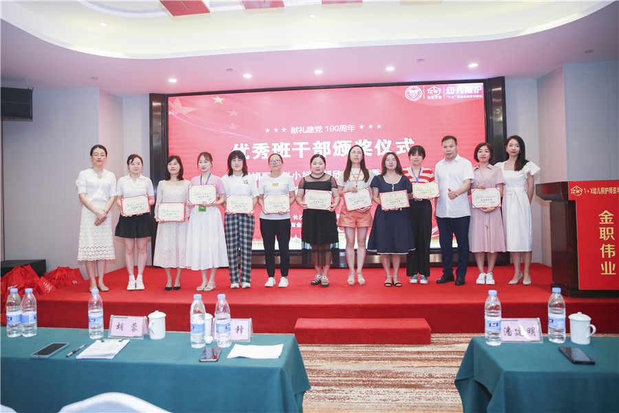 而后,四川职业技术学院熊欢老师、朱锐老师为长沙民政职业技术学院、湖南金职伟业母婴护理有限公司赠予锦旗,以此表达学员们的深厚谢意。同时,湖南金职伟业1+X幼儿照护项目委员会为本期优秀班干部、优秀学员以及教师教学能力竞赛特聘专家评委颁发证书。证书虽小,却是辛劳付出的回报、专业实力的证明,更是职责的坚守。