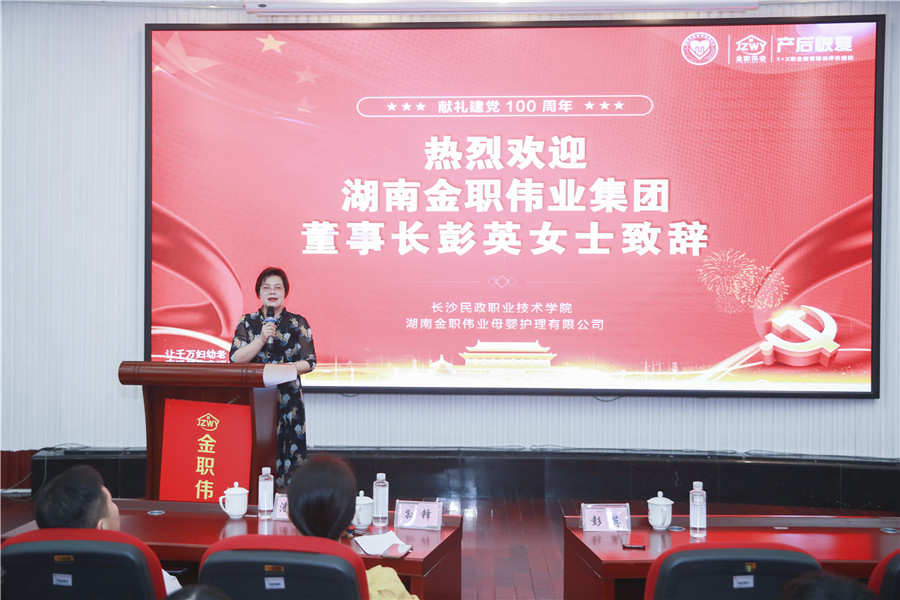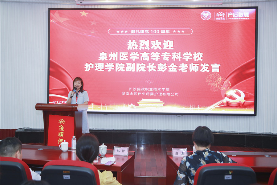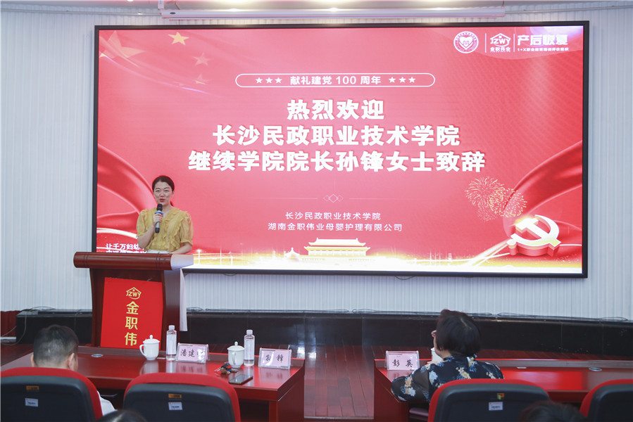 在此期培训开班典礼上,长沙民政职业技术学院继续教育学院院长孙锋、金职伟业董事长彭英率先发表致辞。孙锋院长提到,党和政府大力支持职业教育的发展,并发布了一系列配套政策加以扶持,作为职业院校应抓住机遇,加快推进人才培养模式的改革。孙锋希望,在座老师能认真学习交流,为推动职业教育、产后恢复行业发展做出重要贡献。“我们金职人拥抱伟大教育情怀,未来,金职伟业将协助试点院校开展证书培训与幼儿照护、产后恢复人才培养工作,持续推动“岗、课、赛、证”融通,全面助力妇幼领域复合型技能人才培养。”彭英董事长分享道。