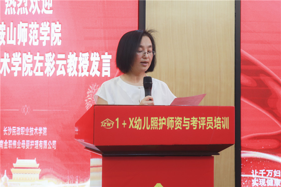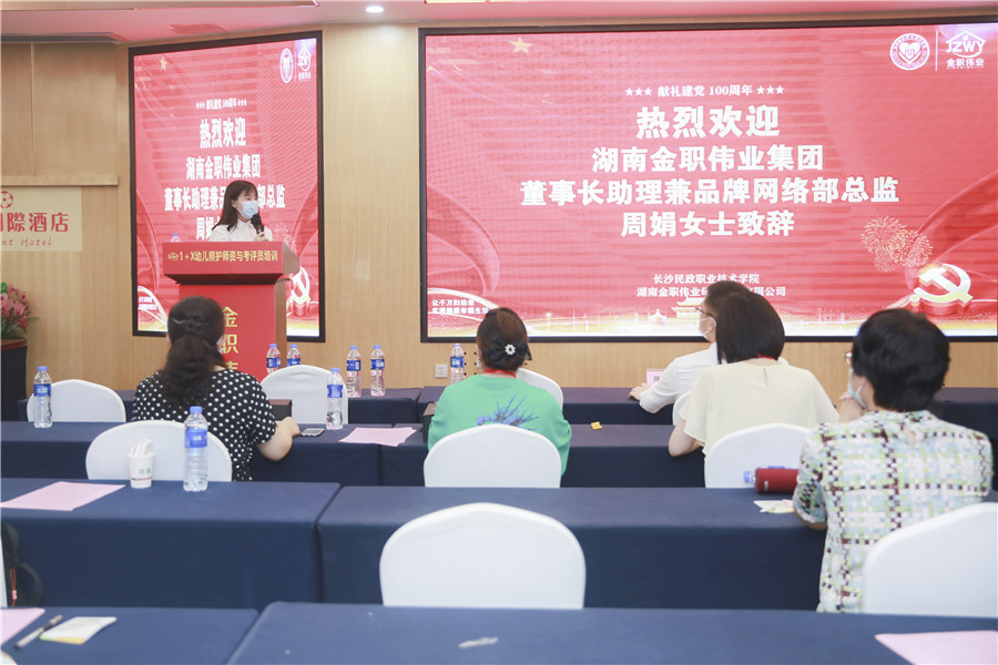 结业典礼上,金职伟业董事长助理兼品牌运营总监周娟进行开场致辞,“感谢所有授课专家的辛勤付出,也感谢在座老师不远千里来到长沙参加此次培训。”同时,周娟期望,各位同仁能成为1+X幼儿照护、产后恢复职业技能等级证书的传播者,担起造福民生的重任,托起中华民族伟大复兴中国梦!