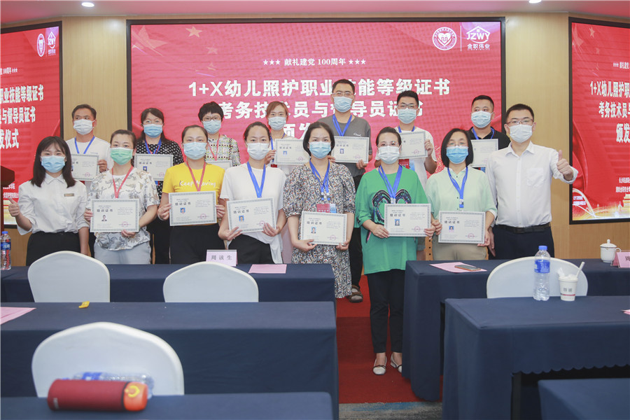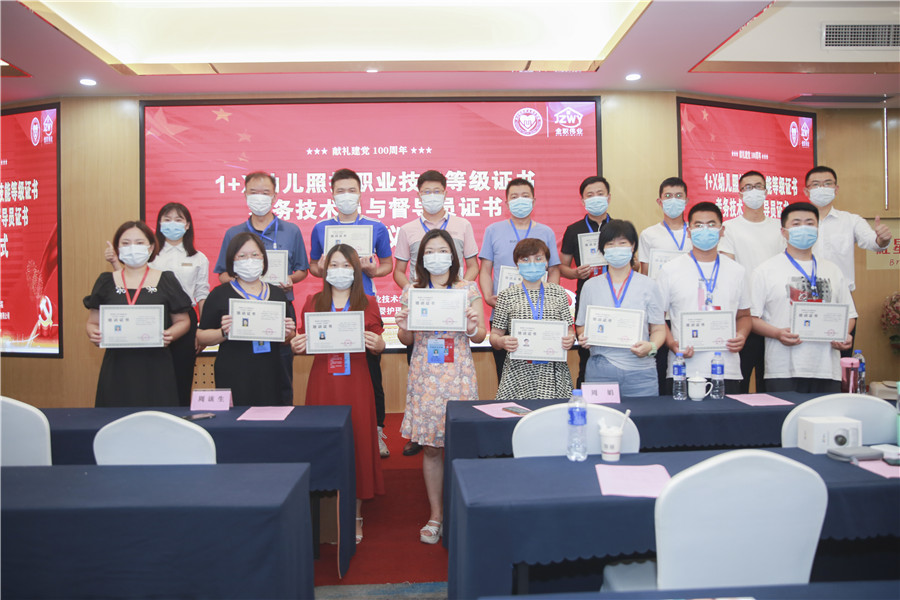 现场,金职伟业董事长助理兼品牌运营总监周娟、市场总监周该生为新一批考核站点院校代表进行授牌,分别是沧州医学高等专科学校、内蒙古民族幼儿师范高等专科学校、上饶职业技术学院、莱芜职业中等专业学校、临河第一职业中等专业学校、西宁城市职业技术学院、福建省尤溪职业中专学校、泉州市工商旅游职业中专学校。同时,还为所有考核通过的老师颁发结业证书。