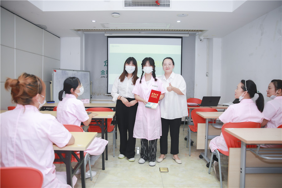 此次结业典礼,还对表现优异的学员进行了表彰,她们分别是“优秀班干部”邹明菊,“优秀学员”杨细乐。“很感谢金职伟业的老师,老师们在培训期间认真负责,还教授了大量的产后康复专业知识及实操技能,最终让我学有所成,学有所获。”在获奖时,学员杨细乐分享道。