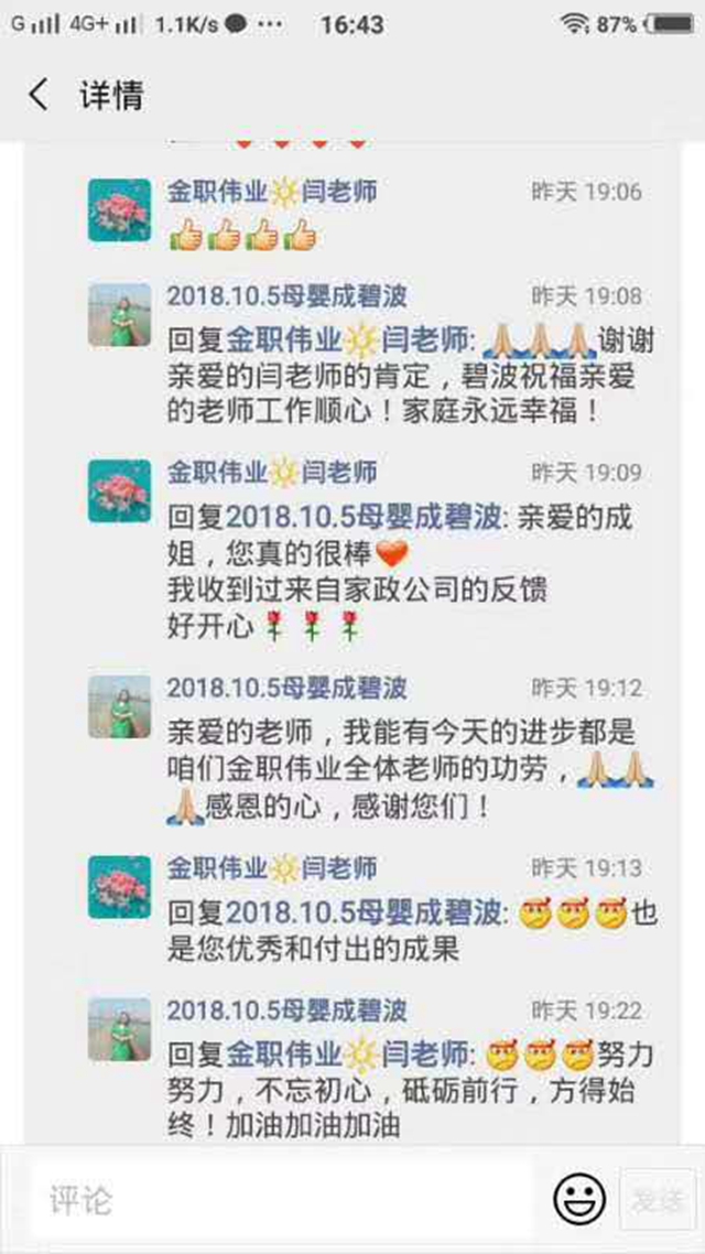 金职伟业湖南湘潭月嫂培训优秀学员成碧波就业跟踪