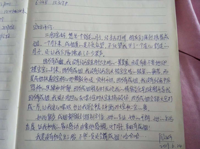 因为有成姐,我没有经历宝宝刚出生时的一筹莫展,而是有条不紊地迎接宝宝的到来。因为有成姐,我没有经历乳头被宝宝吸到皲裂的痛苦,而是成姐扶着宝宝耐心地教他吸,顺利开奶。因为有成姐,我没有经历产后恐怖的焦躁和抑郁,因为成姐能及时发现我的情绪变化并且安慰开导我。因为有成姐,我不用担心在喂小宝时大宝来搞破坏,因为成姐会跟大宝打成一片,让我安心喂奶,也让我学会怎么平衡大宝和二宝的爱。
