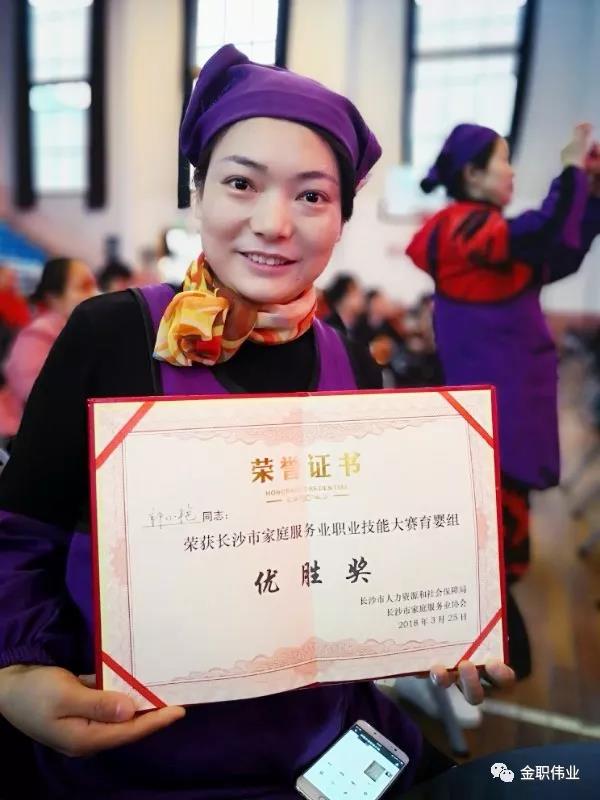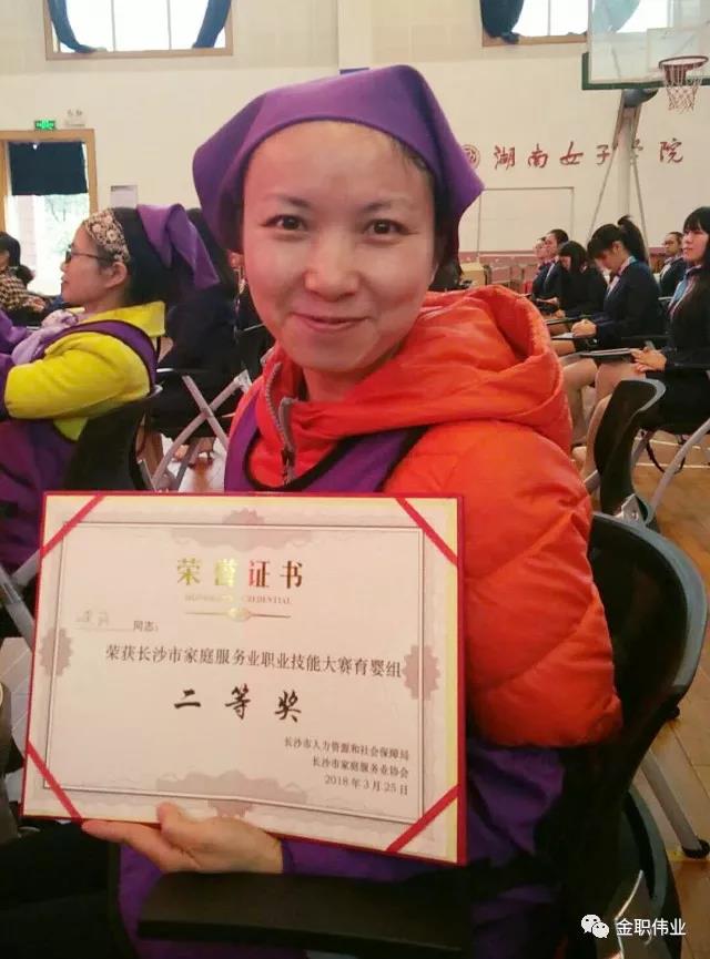 在唐老师的悉心指导下,两位选手一路过关斩将,通过前期笔试,顺利进入了25日的实操比拼。最终黄丽排名育婴组第二,获得二等奖,将与另两位获奖选手代表长沙市参加湖南省家庭服务业职业技能大赛;郭小艳排名第七,获得优胜奖。金职伟业团队也凭借出色的赛场表现,斩获团体一等奖,可喜可贺!