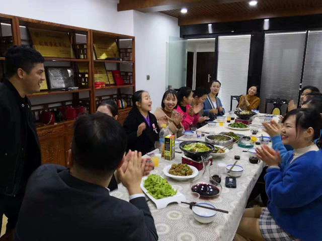 一直以来,云集大厦五楼的“食堂”都是招待贵宾、同事欢聚的好地方。晚上6点,金婴丽人长沙总店全体小伙伴齐聚在5楼,厨房正在热火朝天准备中,经过掌勺阿姨的努力,很快十三道菜就端上餐桌。干锅、蒸、炒、汤应有尽有,色香味俱全,引得小伙伴们纷纷拍照。